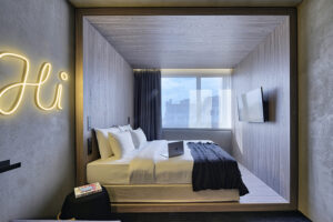Η μετατροπή ενός υφιστάμενου κτιρίου γραφείων της δεκαετίας του 70’ σε μία Smart σύγχρονη ξενοδοχειακή μονάδα, η οποία έπρεπε να εμπεριέχει τα ιδιαίτερα χαρακτηριστικά της αστικής ζωής. Η ξενοδοχειακή μονάδα διαθέτει 42 δωμάτια και 3 σουίτες σε συνολική επιφάνεια 2300 τ.μ. ΩΡΑΡΙΟ – 22/11 14:00-20:00 – 23/11 10:00-15:00 – Μητροπολίτου Ιωσήφ 8.