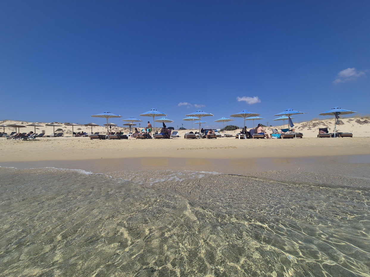 Το πρωί, η θάλασσα είναι ήρεμη και διάφανη, ιδανική για βουτιές που αναζωογονούν. Το μεσημέρι, οι αμμόλοφοι γίνονται σκηνικό για ηλιοθεραπεία ή για μια βόλτα με τα πόδια, με τον αέρα να δροσίζει την ατμόσφαιρα. Το ηλιοβασίλεμα, όμως, είναι αυτό που κλέβει την παράσταση: η θάλασσα γίνεται καθρέφτης του ουρανού και οι σκιές των αμμόλοφων δημιουργούν ένα θέαμα που δεν ξεχνάς.