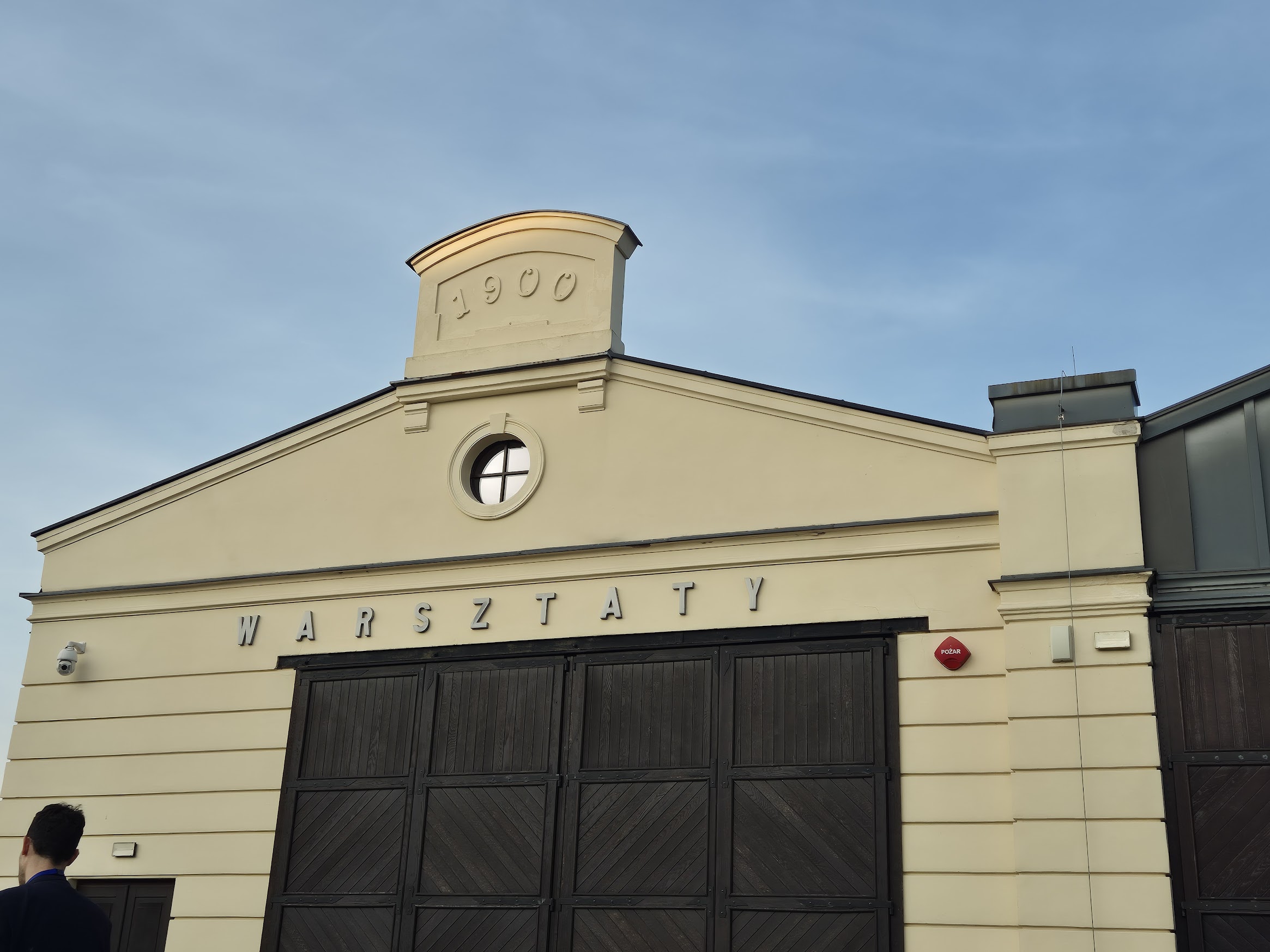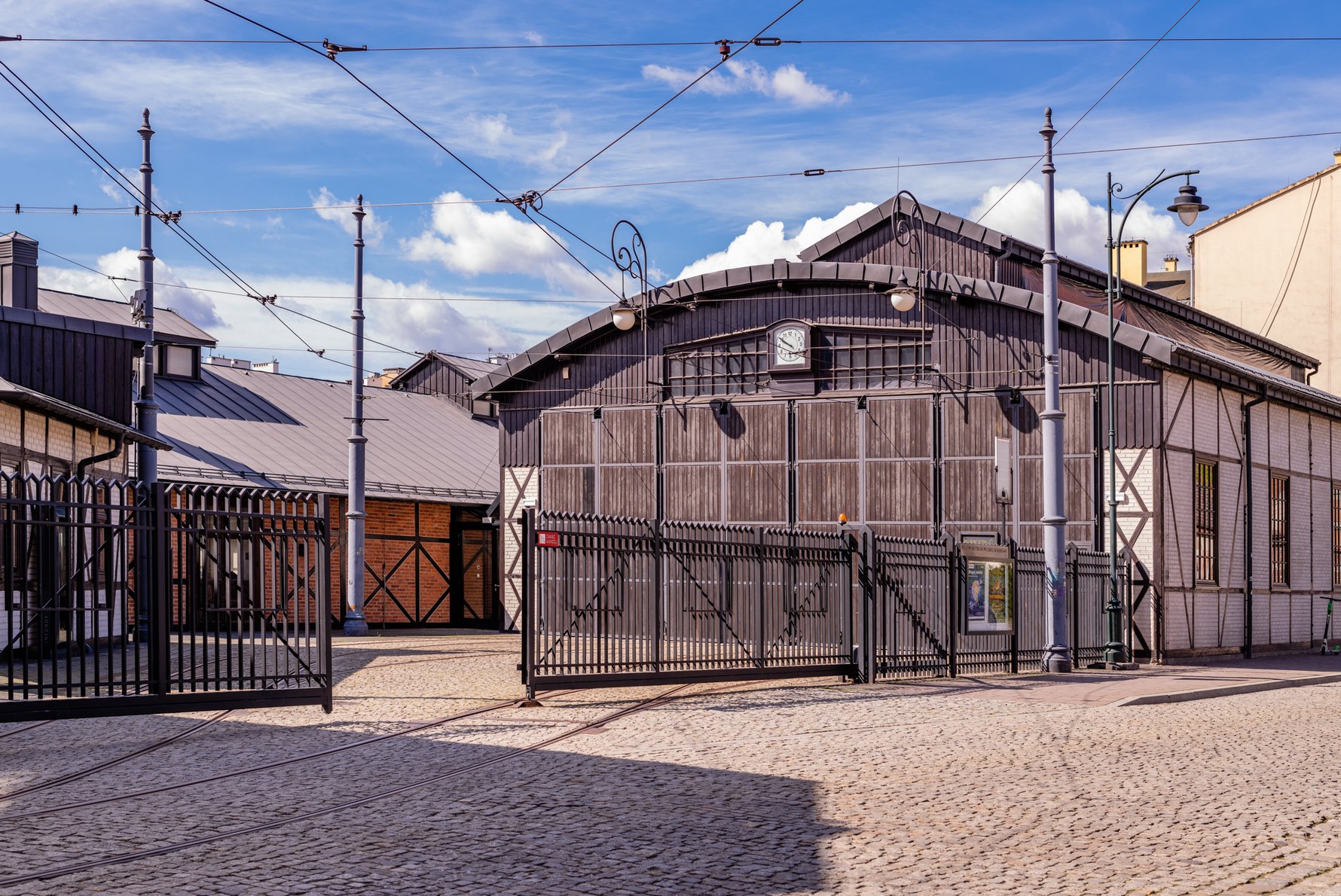 Το παλιό αμαξοστάσιο τραμ της Κρακοβίας δεν είναι απλώς σκηνικό. Είναι ιστορία γραμμένη σε τοίχους και ημερομηνίες. Η επιγραφή Elektryczny Tramwaj Krakowski θυμίζει την εποχή που, στα τέλη του 19ου αιώνα, η πόλη μπήκε δυναμικά στην ηλεκτροκίνηση. Λίγα μέτρα πιο πέρα, στο κτήριο με την ένδειξη Warsztaty, δεσπόζει χαραγμένο το 1900 — το έτος που οι εγκαταστάσεις λειτουργούσαν ως εργαστήρια συντήρησης και επισκευής των τραμ που κινούσαν καθημερινά την Κρακοβία.