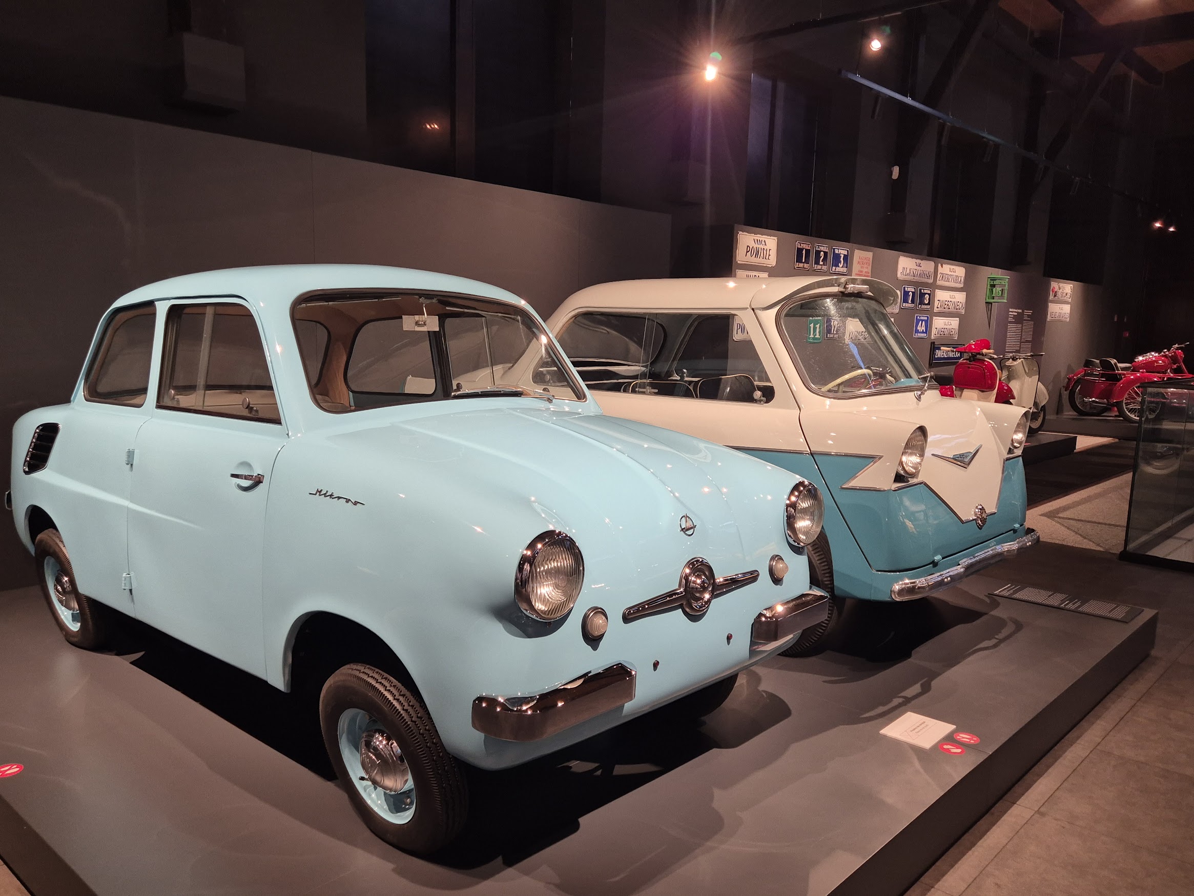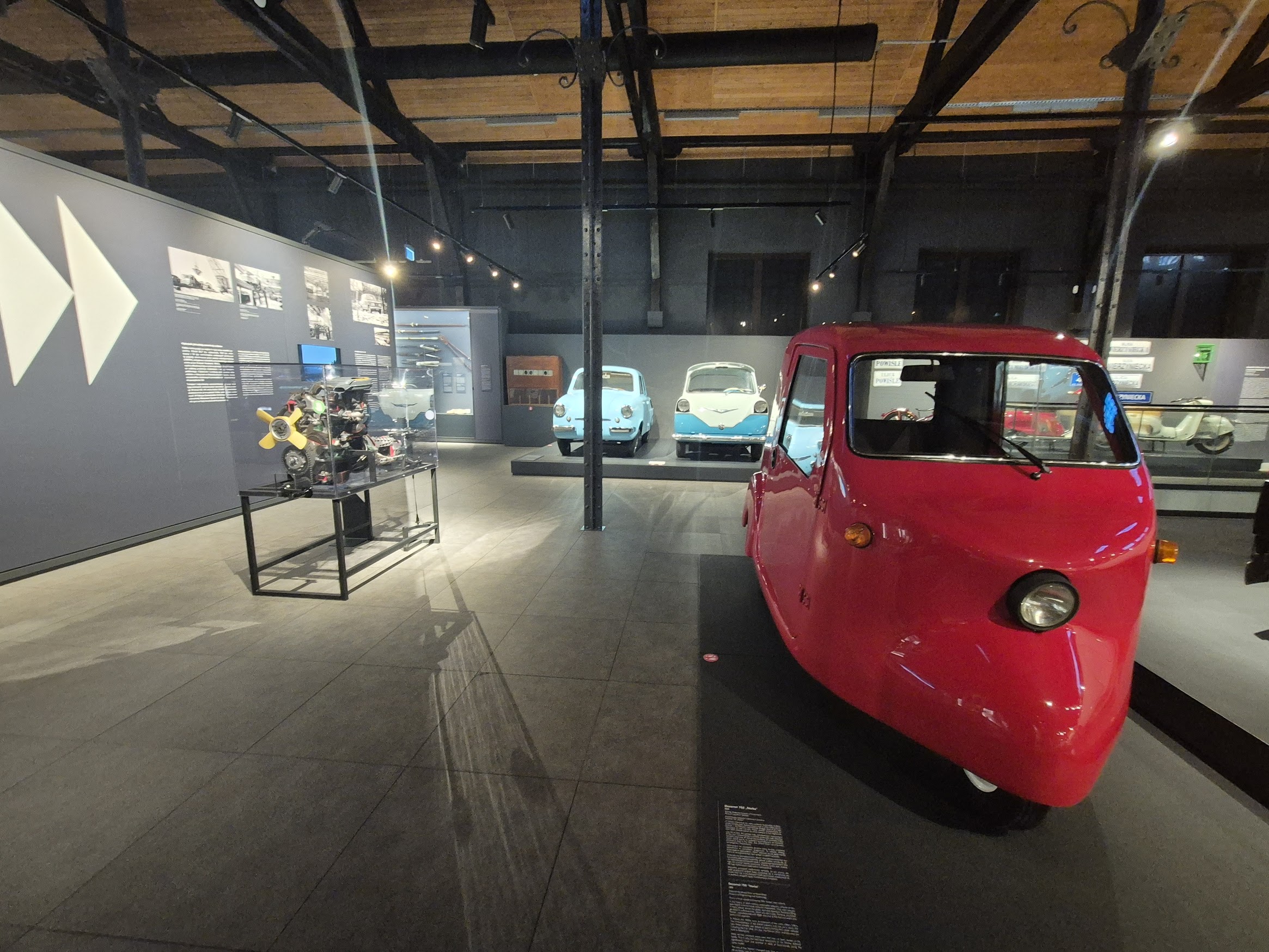 Μοτοσικλέτες, αυτοκίνητα άλλης εποχής, μικρά οχήματα που έκαναν την καθημερινότητα πιο εφικτή. Κάθε έκθεμα μοιάζει να έχει τη δική του ιστορία δρόμου: ποιον μετέφερε, πού πήγε, τι όνειρα κουβαλούσε. Τα χρώματα, οι καμπύλες, οι λεπτομέρειες στο τιμόνι και στο ταμπλό θυμίζουν ότι η πρόοδος δεν ήταν ποτέ μόνο πρακτική — είχε πάντα και αισθητική.