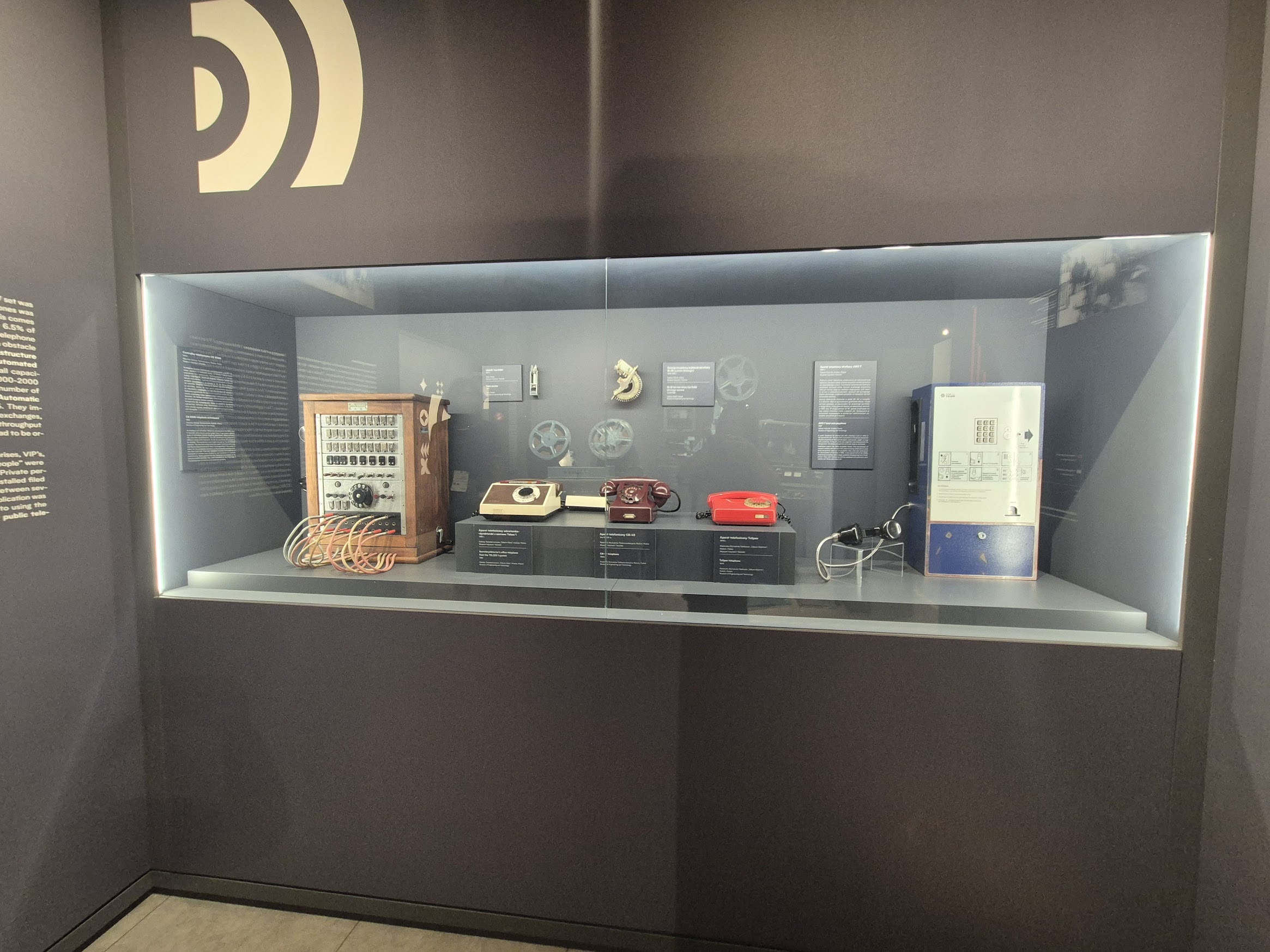 Ο παλιός πράσινος τηλεφωνικός θάλαμος στέκεται σχεδόν ποιητικά μέσα στον χώρο. Δίπλα του, συσκευές που κάποτε ένωναν σπίτια, πόλεις, ανθρώπους. Ραδιόφωνα, τηλεοράσεις, μηχανές ήχου και εικόνας — όλα όσα μας έμαθαν να ακούμε, να βλέπουμε, να μοιραζόμαστε.