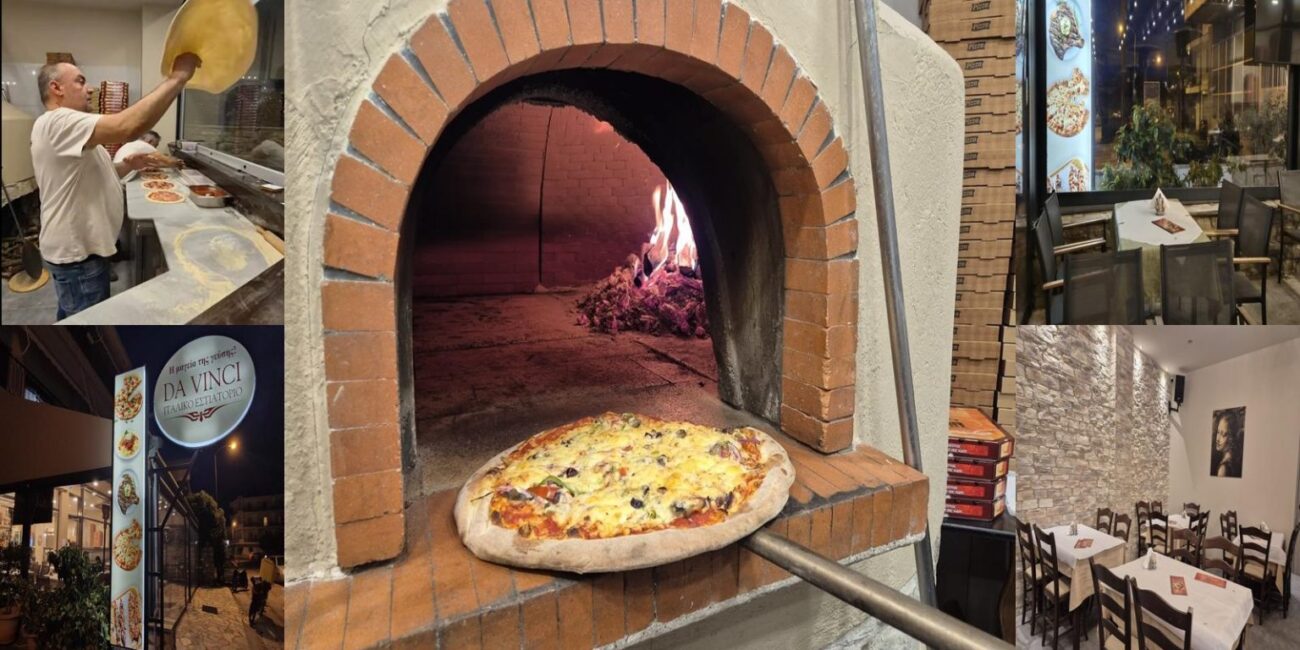 Στη Da Vinci, η πίτσα δεν είναι απλώς ένα πιάτο. Είναι τελετουργία. Η ζύμη ανοίγεται στο χέρι, με κινήσεις που φανερώνουν εμπειρία χρόνων. Τα υλικά τοποθετούνται με προσοχή και η πίτσα παίρνει τη θέση της στον ξυλόφουρνο, εκεί όπου αποκτά τη χαρακτηριστική τραγανή βάση και το άρωμα που δύσκολα ξεχνάς.