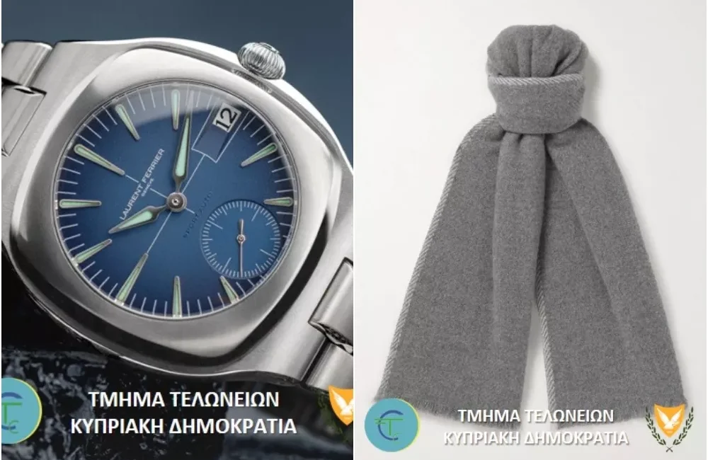 Σύμφωνα με σχετική ανακοίνωση, την 1/12/2025 λειτουργοί του Τμήματος Τελωνείων στο Αεροδρόμιο Λάρνακας κατά τη διάρκεια των συνήθων ελέγχων επιβατών που διέρχονται από την πράσινη δίοδο (τίποτα προς δήλωση) εντόπισαν στις αποσκευές 57χρονου επιβάτη με Κυπριακή υπηκοότητα, που αφίχθηκε από την Ελβετία, ένα πολυτελές ρολόι και ένα αξεσουάρ ένδυσης συνολικής αξίας άνω των €105,000, τα οποία παρέλειψε να δηλώσει για την καταβολή των αναλογούντων δασμών και φόρων.