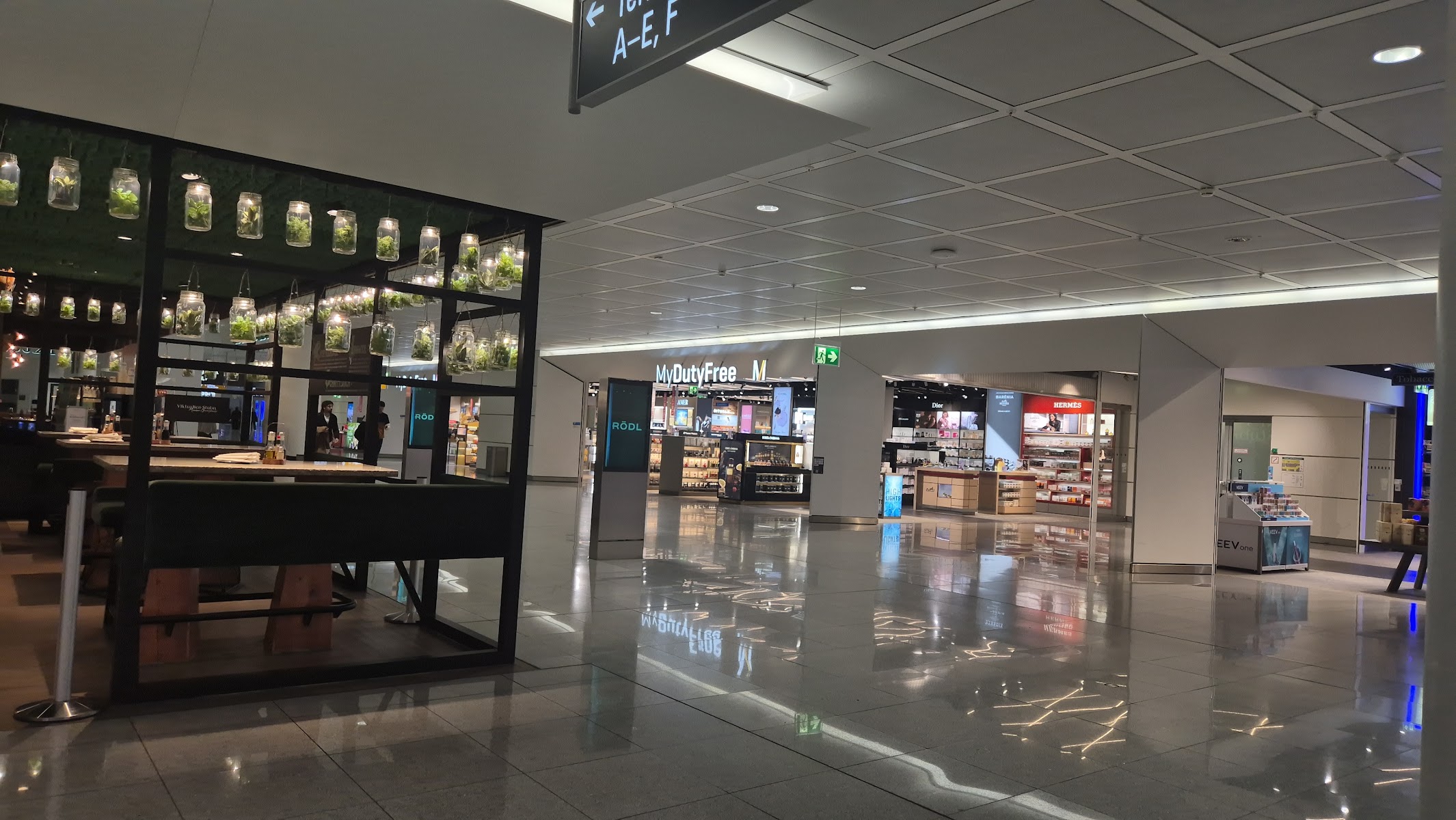Το duty free αναπτύσσεται σαν curated shopping experience. Ευρύχωροι διάδρομοι, προσεγμένη παρουσίαση, διεθνή luxury brands και γερμανικά προϊόντα υψηλής ποιότητας συνυπάρχουν σε ένα περιβάλλον που θυμίζει boutique εμπορικού κέντρου. Η περιήγηση δεν είναι βιαστική, αλλά απολαυστική.