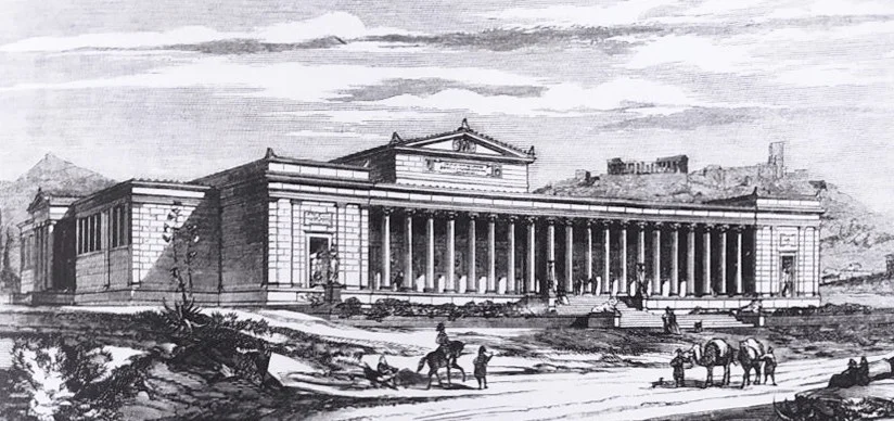 1871-1889: Κατασκευή πτερύγων (Κάλκος, Βλάχος, Ziller). Το 1889 ολοκληρώνεται η δυτική όψη και η κεντρική αίθουσα, με νεοελληνιστικό ύφος και αρχές της Αθηναϊκής Τριλογίας.