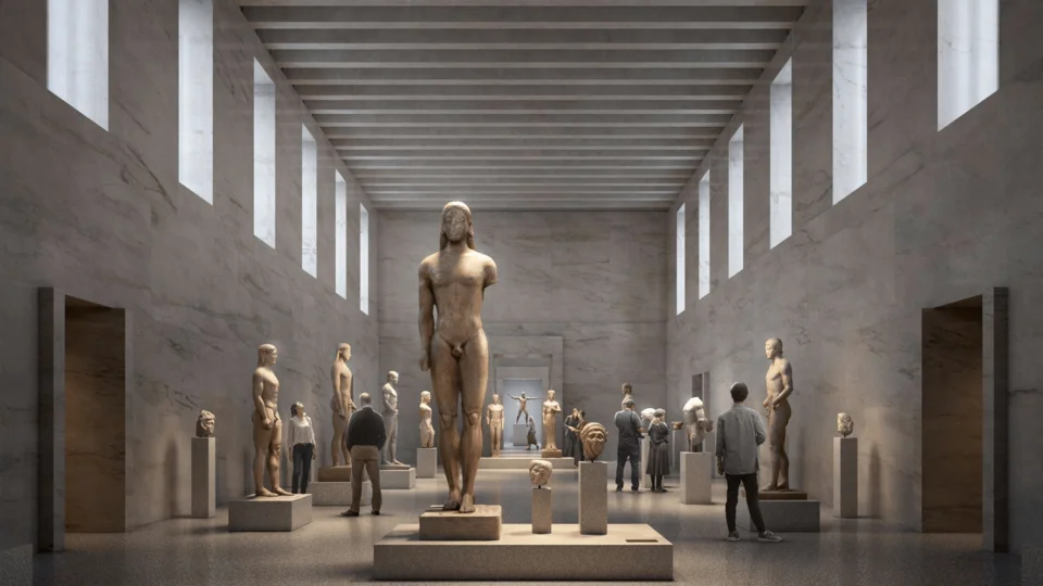 Φωτορεαλιστική απεικόνιση αρχαϊκής αίθουσας