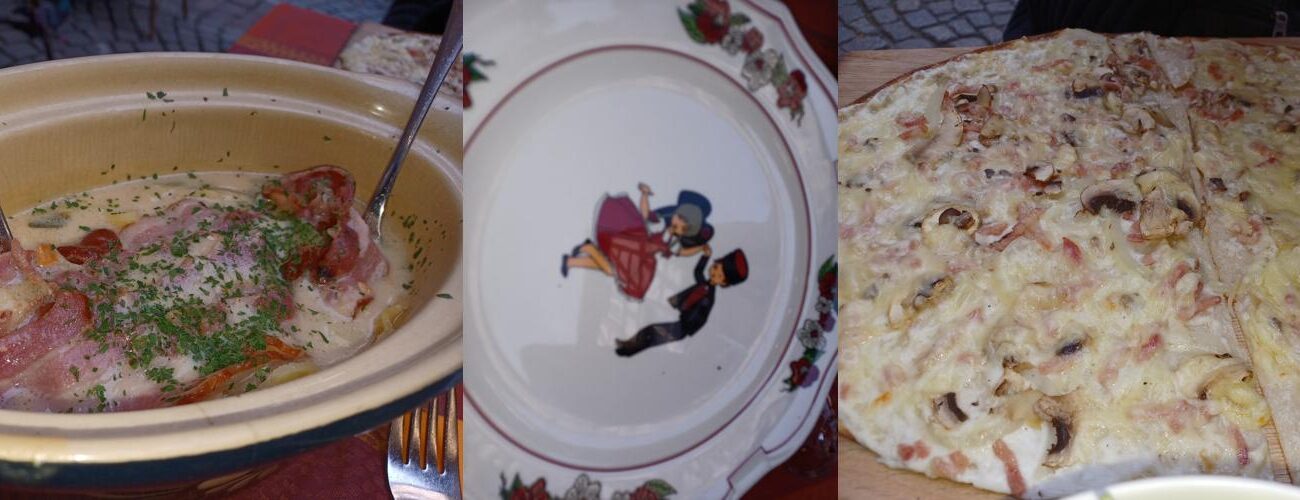 Το τραπέζι μας γέμισε με αρώματα και χρώματα. Ξεχωρίσαμε το baeckeoffe, ένα πιάτο-σύμβολο της Αλσατίας: κρέατα και λαχανικά σιγομαγειρεμένα σε λευκό κρασί, που φτάνουν στο τραπέζι μέσα σε πήλινη κατσαρόλα. Η γεύση του πλούσια και ζεστή, θυμίζει σπιτικό φαγητό που κουβαλά ιστορία αιώνων.