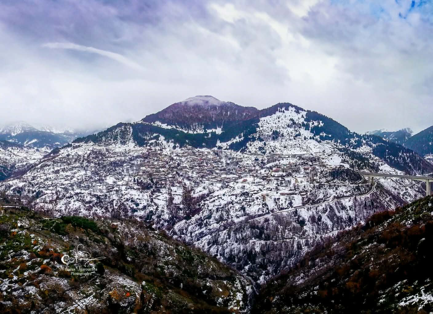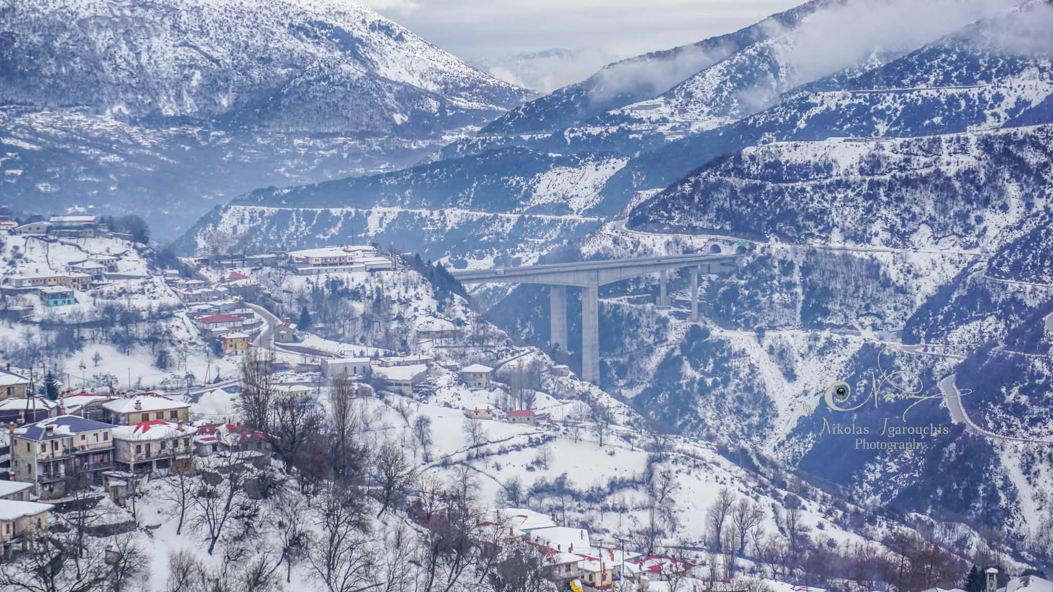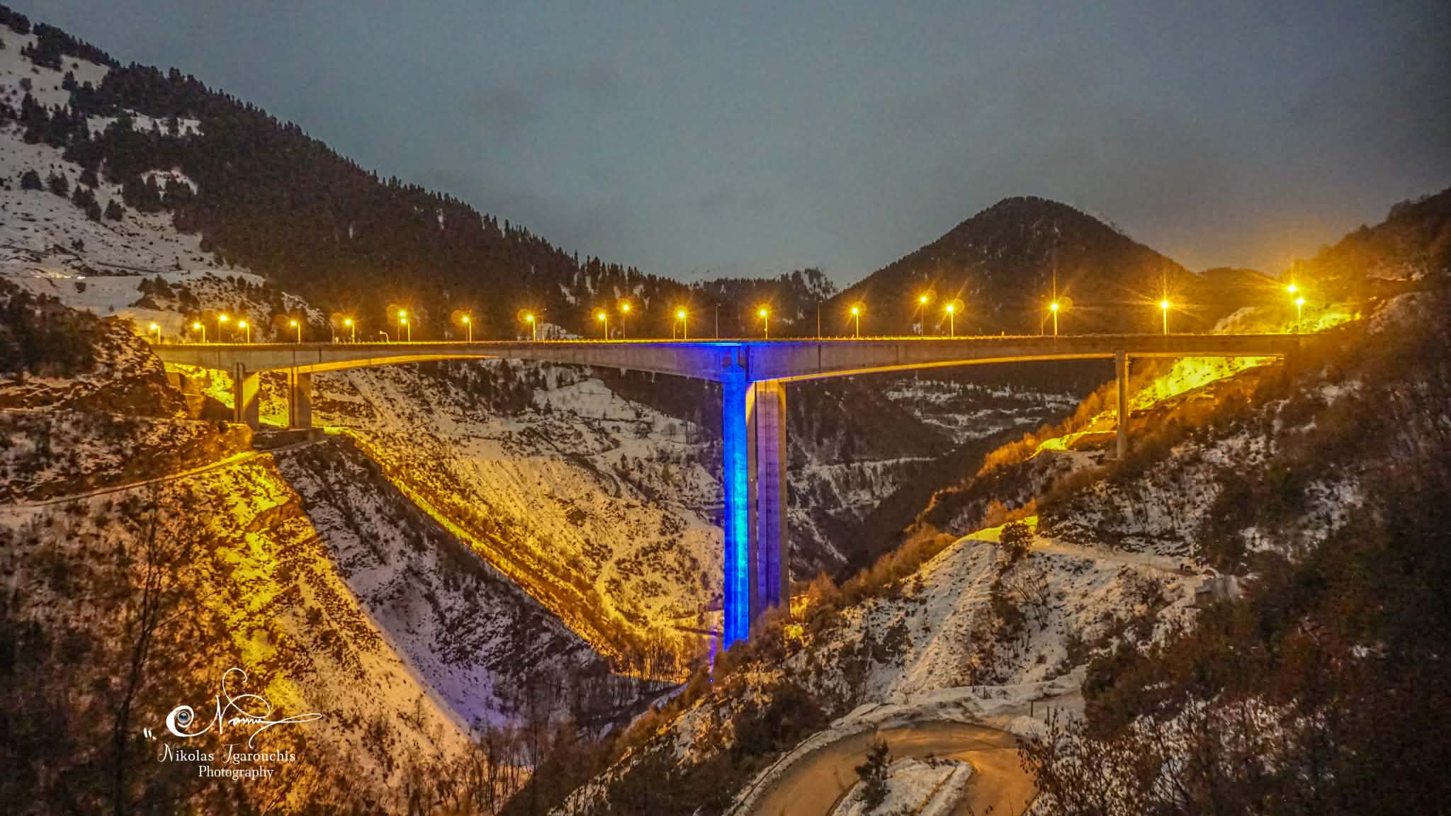 Τον χειμώνα, η εικόνα της γέφυρας μέσα σε χιονισμένα βουνά και σύννεφα που «αγκαλιάζουν» τις κορυφές, θυμίζει κινηματογραφικό σκηνικό. Το φως του σούρουπου, οι χαράδρες της Πίνδου και η αίσθηση του ύψους δημιουργούν ένα τοπίο που δύσκολα ξεχνιέται.