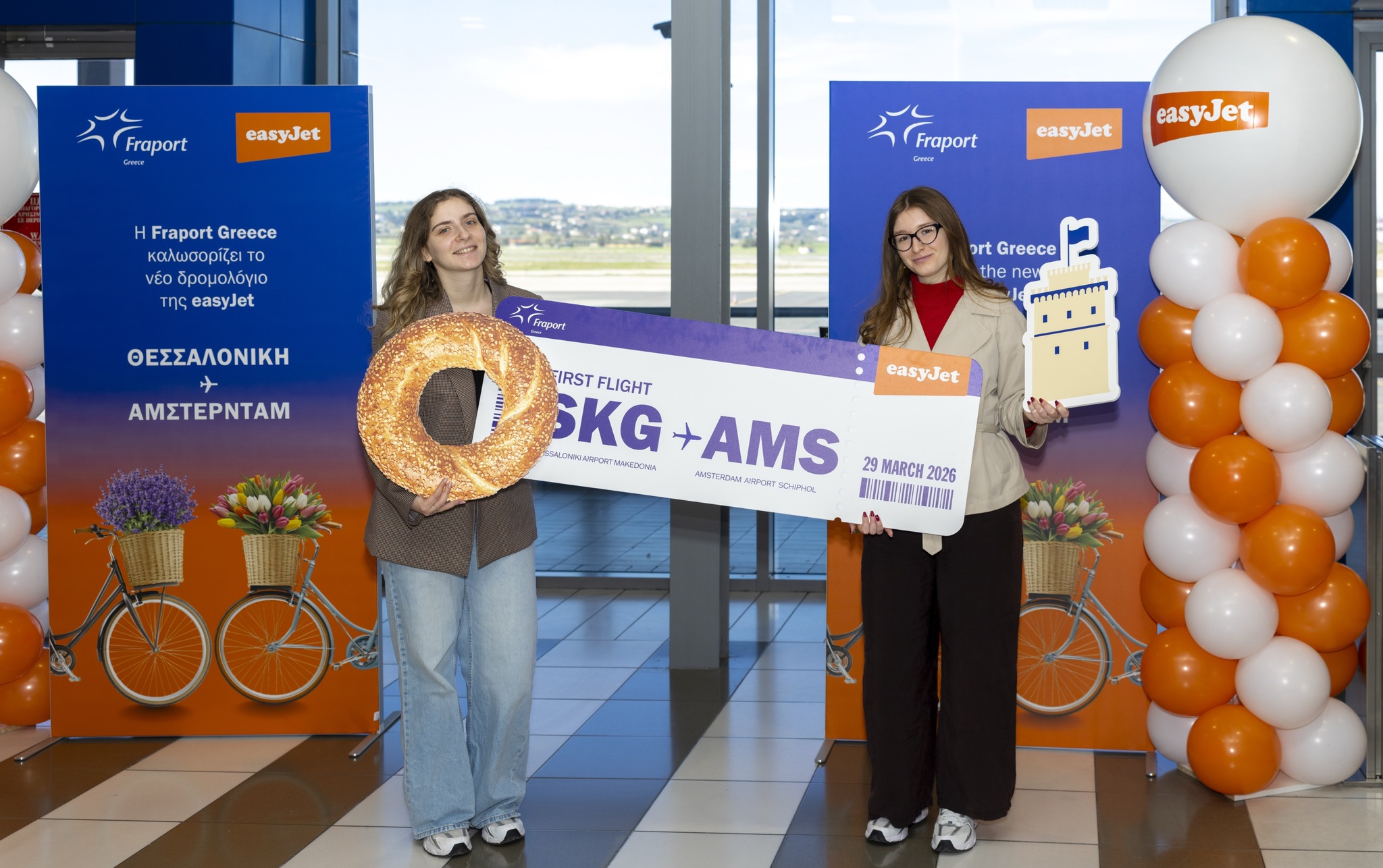 Απογειώθηκε στις 29 Μαρτίου η πρώτη πτήση της easyJet που συνδέει απευθείας το Άμστερνταμ με τη Θεσσαλονίκη. Κατά την άφιξη, τους επιβάτες υποδέχθηκαν εκπρόσωποι του αεροδρομίου και της easyJet, σηματοδοτώντας μία σημαντική επέκταση του δικτύου της εταιρείας προς τη Βόρεια Ελλάδα.