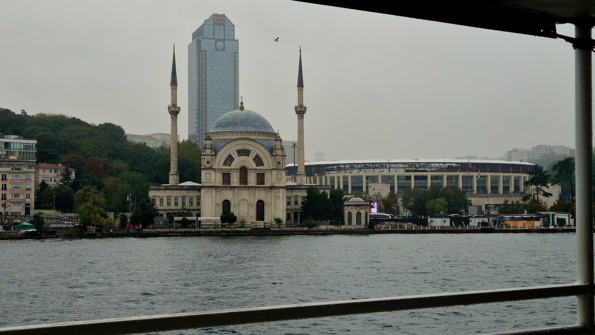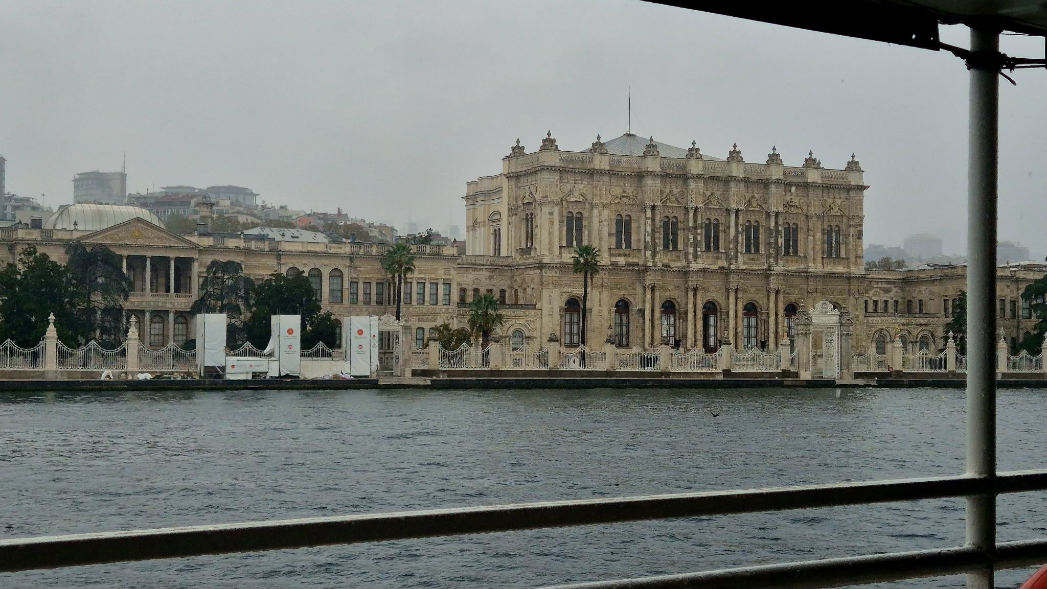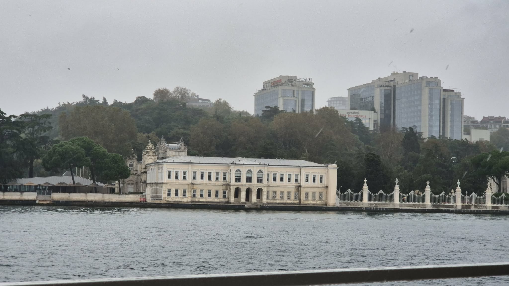 Κατά μήκος της διαδρομής, τζαμιά με τους τρούλους και τους μιναρέδες τους, ξεχωρίζουν δίπλα στο νερό, στέκονται χαμηλά, σηματοδοτώντας γειτονιές και ρυθμούς καθημερινότητας. Λίγο πιο κάτω, το μεγάλο παλάτι μεγαλόπρεπο κι επιβλητικό.