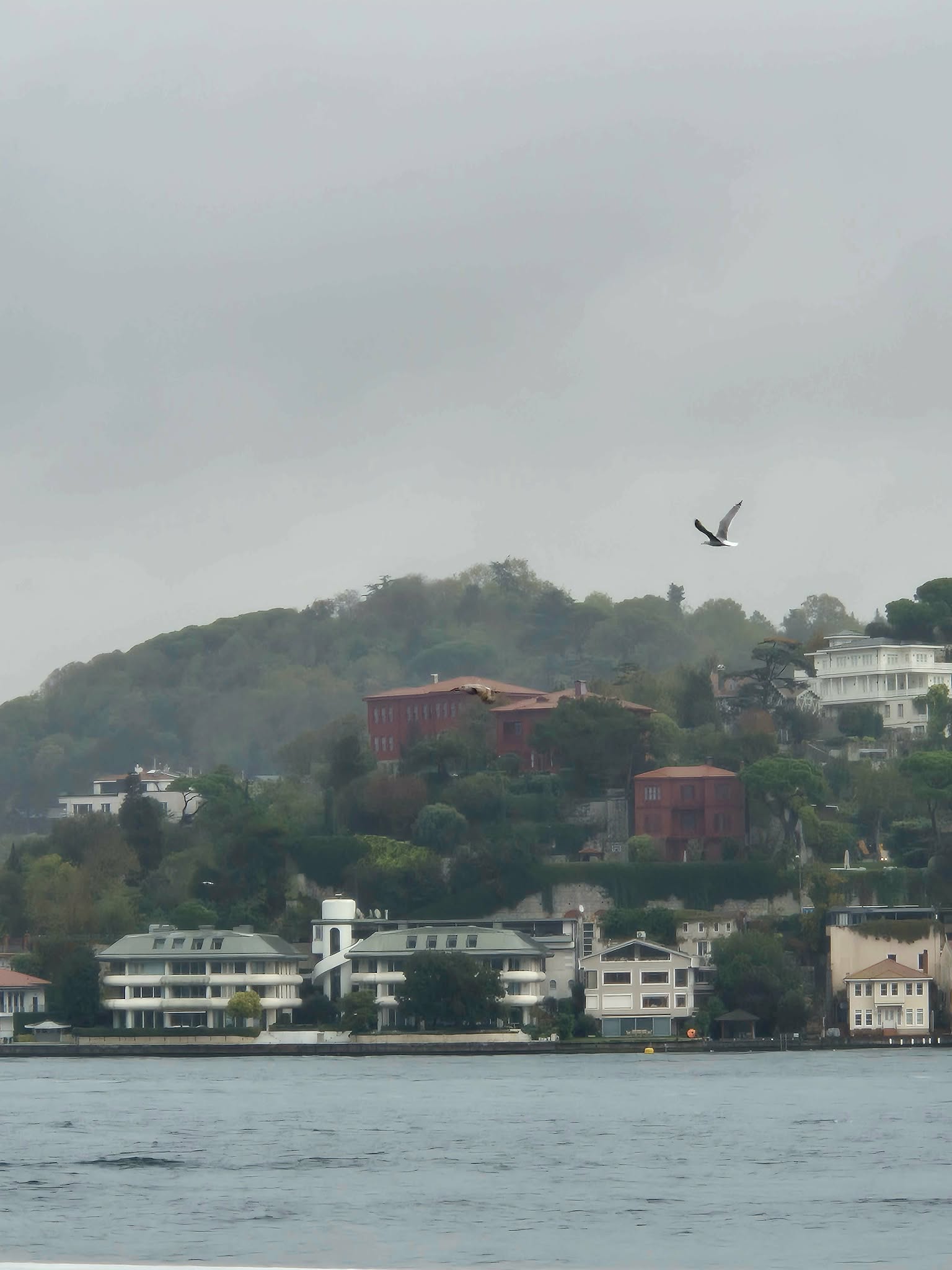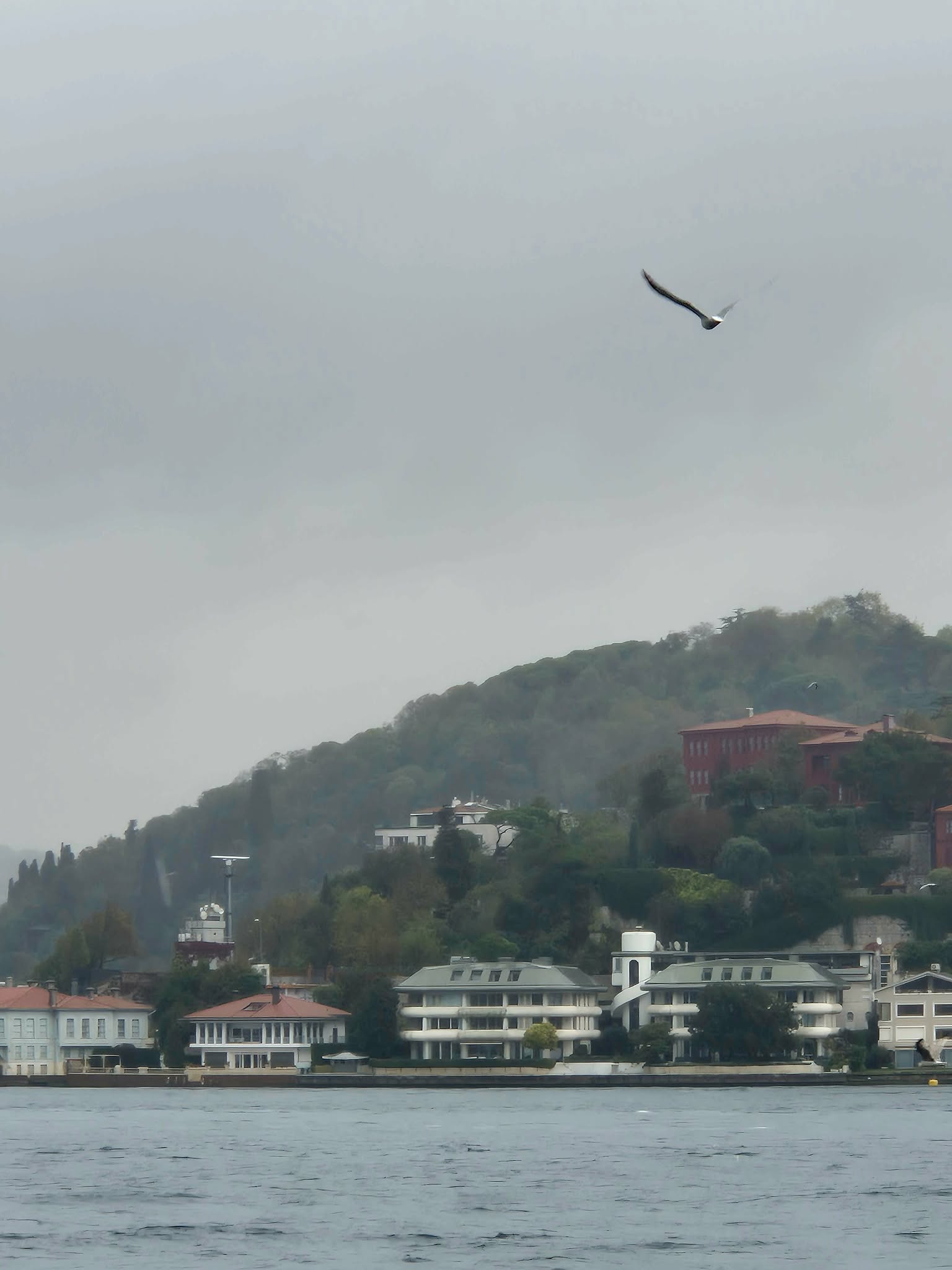 Η πρώτη εικόνα είναι το νερό. Σκούρο, γεμάτο μικρά κύματα από τον αέρα και το πέρασμα των καραβιών. Το καραβάκι προχωρά αργά και ο Βόσπορος ανοίγεται μπροστά σου σαν διάδρομος ζωής. Το καραβάκι κινείται σταθερά και μπροστά σου απλώνεται ο Βόσπορος, γκρίζος και ανοιχτός. Το νερό έχει μικρά κύματα και σπασίματα από τον αέρα, ενώ γύρω πετούν γλάροι χαμηλά, σχεδόν δίπλα στην κουπαστή. Μια βροχερή χειμωνιάτικη μέρα με θέα την Κωνσταντινούπολη που αποκαλύπτεται σταδιακά.