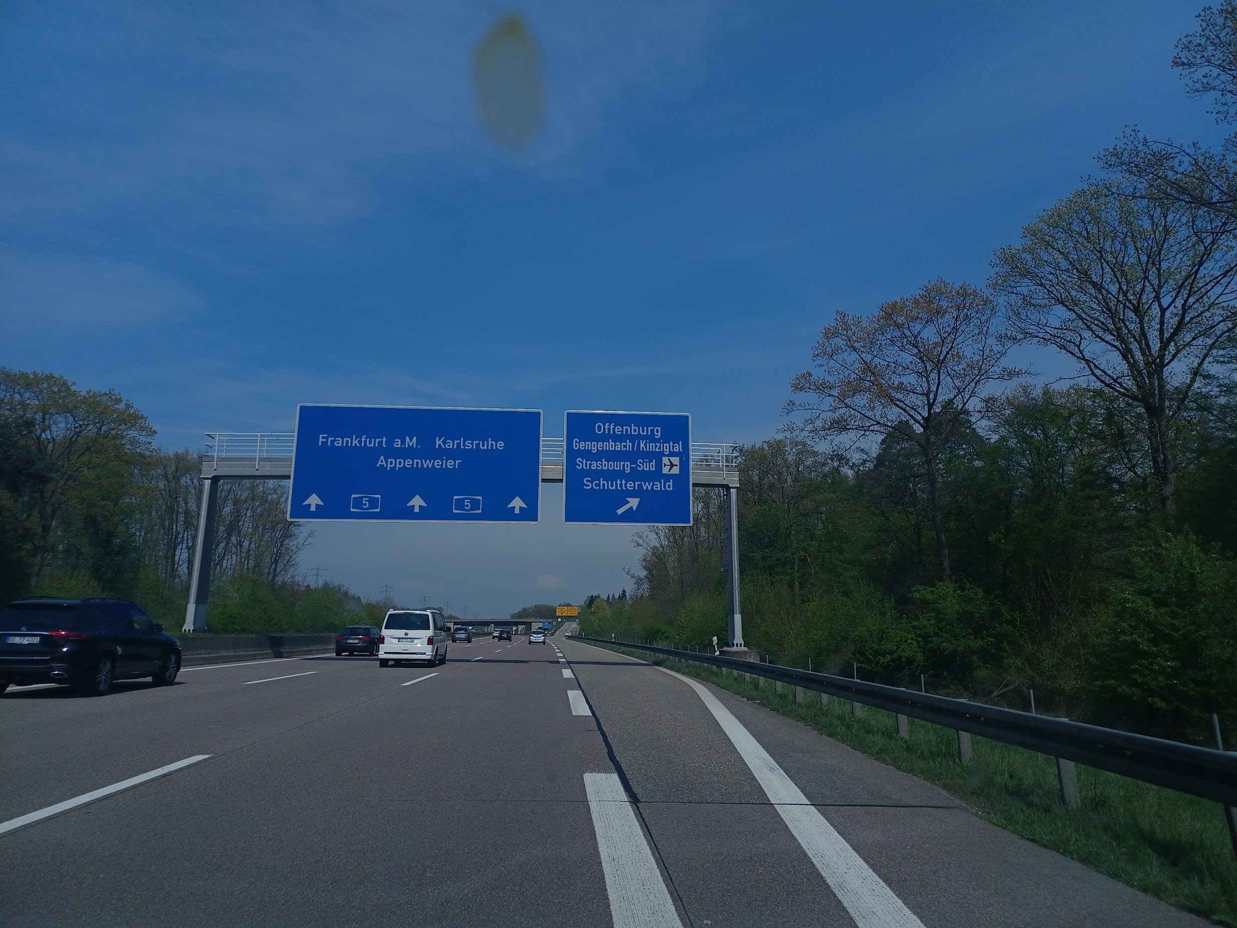 Η διαδρομή σε γεμίζει εικόνες. Ταμπέλες που δείχνουν προς διαφορετικές κατευθύνσεις — Γερμανία, Γαλλία, Στρασβούργο, Φρανκφούρτη. Ουρανοί που απλώνονται πάνω από τα δέντρα και το ποτάμι, με το τοπίο να αλλάζει διακριτικά χρώματα ανάλογα με το πού στρέφεις το βλέμμα σου. Κι εσύ, μέσα σε όλα αυτά, νιώθεις πως η Ευρώπη δεν είναι χάρτης με σύνορα αλλά ένα ανοιχτό ταξίδι.