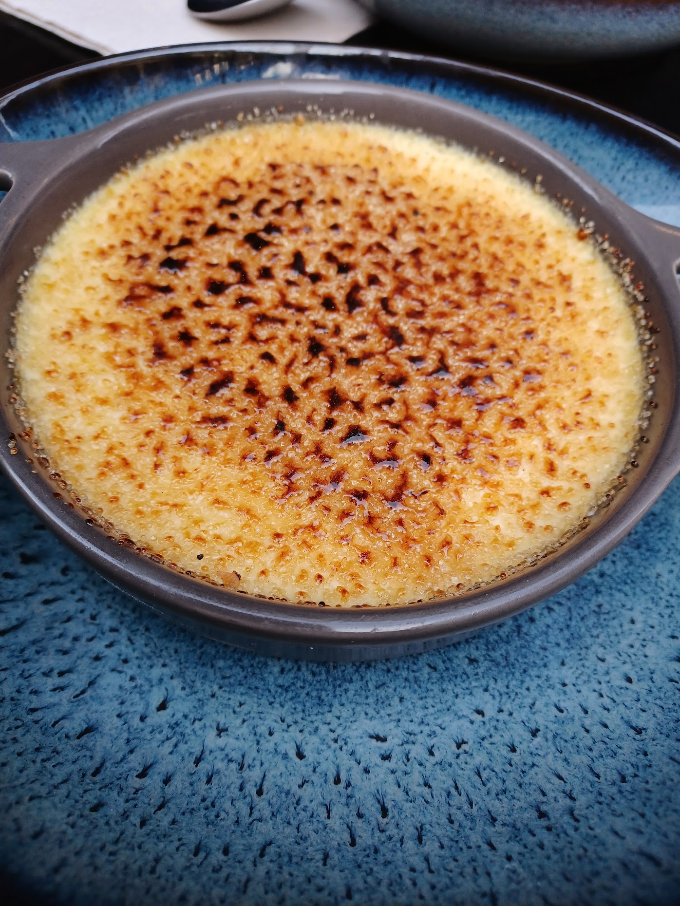 Η στιγμή που σπας με το κουτάλι την καραμελωμένη επιφάνεια και βουτάς στην κρεμώδη βανίλια από κάτω, είναι από μόνη της μια εμπειρία. Σαν να χωρίζεις στα δύο μια μικρή απόλαυση που συνδυάζει τραγανότητα και βελούδινη γεύση.
