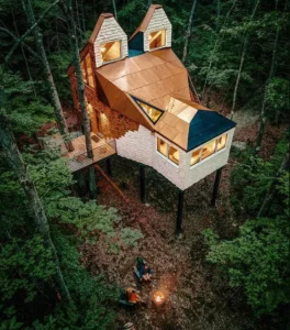 Χτισμένα ανάμεσα στα κλαδιά ενός δέντρου, συνδυάζουν την αρχιτεκτονική με το φυσικό περιβάλλον, δημιουργώντας έναν χώρο που μοιάζει να αιωρείται ανάμεσα στη γη και τον ουρανό. Για τα παιδιά, είναι ένα καταφύγιο παιχνιδιού και ονείρων· για τους ενήλικες, μια επιστροφή στην απλότητα και την ηρεμία.