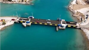 Πρόκειται για τις βυθιζόμενες γέφυρες της περιοχής, κατασκευές που εξυπηρετούν τη σύνδεση της Πελοποννήσου με την ηπειρωτική Ελλάδα με έναν τεχνικά άκρως ιδιότυπο τρόπο.