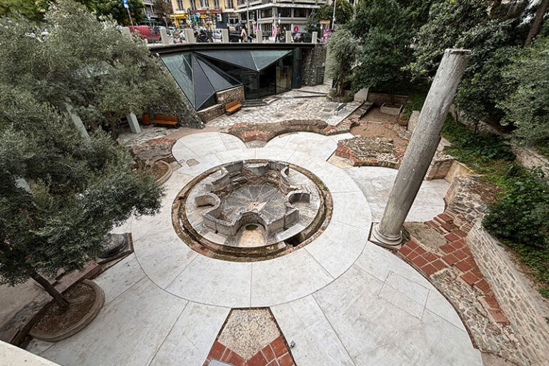 Ο αρχαιολογικός χώρος, που εκτείνεται μεταξύ των οδών Μακένζι Κίνγκ, Παύλου Μελά και Ικτίνου, σε στάθμη χαμηλότερη κατά 5,00 μ., περιλαμβάνει βαπτιστήριο των πρωτοβυζαντινών χρόνων (4ος / 5ος αι.) και υπόγειες δίδυμες κινστέρνες, που κατά τη βυζαντινή εποχή μετασκευάστηκαν σε λατρευτικό χώρο, γνωστό σήμερα ως «Αγίασμα». Περιλαμβάνει βαπτιστήριο που ανάγεται στους πρωτοβυζαντινούς χρόνους και ανήκει στο συγκρότημα της επισκοπικής βασιλικής του 5ου αι., πάνω στα ερείπια της οποίας κτίστηκε ο βυζαντινός ναός της Αγίας Σοφίας. ΩΡΑΡΙΟ 22/11 9:00-13:00 23/11 11:00-13:00*Μακένζυ Κινγκ & Ικτίνου.