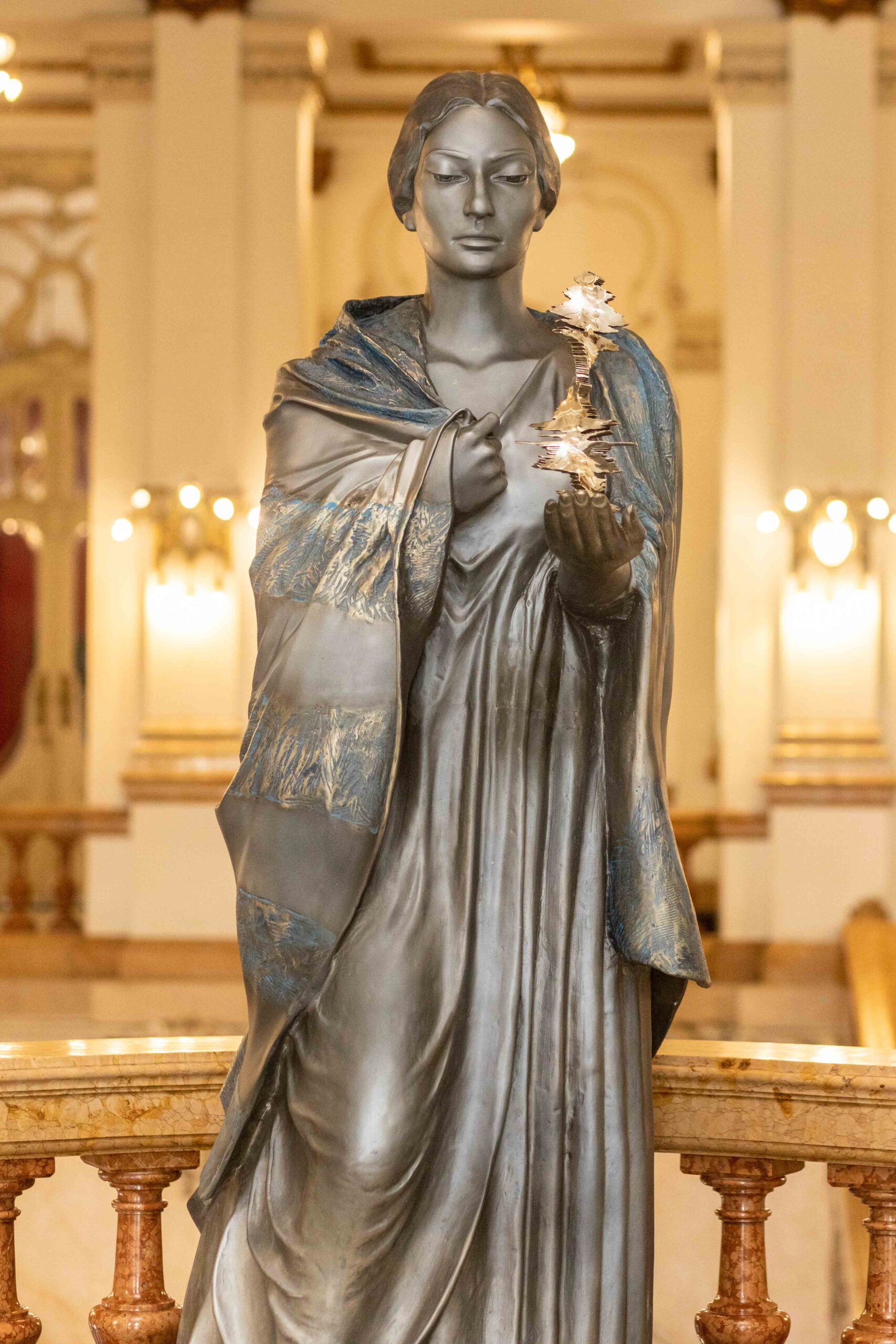 Το μνημειώδες γλυπτό, ύψους 2,5 μέτρων και βάρους περίπου 400 κιλών, δεσπόζει στον ιστορικό χώρο της όπερας, στον ίδιο τόπο όπου η Μαρία Κάλλας εμφανίστηκε το 1951, δημιουργώντας έναν ισχυρό συμβολισμό επιστροφής και αιωνιότητας.