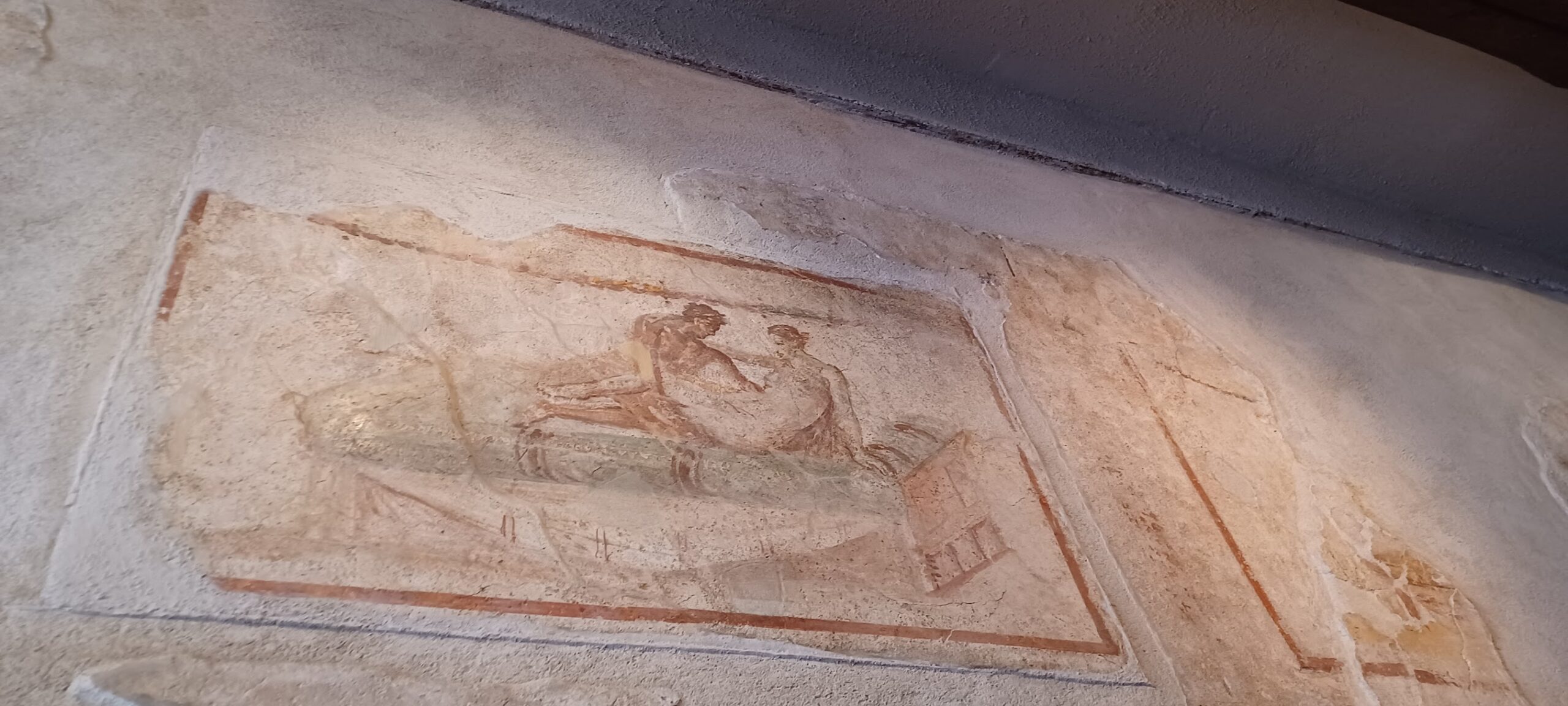 Καθώς περιπλανιέσαι στους στενούς διαδρόμους του αρχαιολογικού χώρου, ξαφνικά βρίσκεσαι μπροστά σε μια σειρά από μικρά δωμάτια. Στην αρχή μοιάζουν με απλές κάμαρες, μέχρι που σηκώνεις το βλέμμα στους τοίχους: ξεθωριασμένες τοιχογραφίες με ερωτικές σκηνές αποκαλύπτουν τον πραγματικό τους ρόλο. Πρόκειται για τα περίφημα πορνεία της Πομπηίας, τα lupanaria, τα οποία λειτουργούσαν από το πρωί μέχρι αργά τη νύχτα, εξυπηρετώντας ταξιδιώτες, εμπόρους και εργάτες της πόλης.