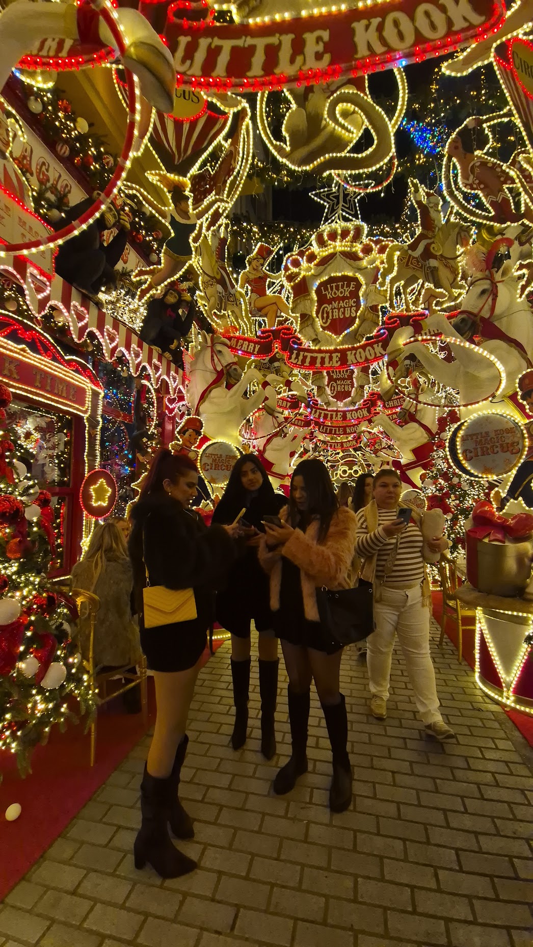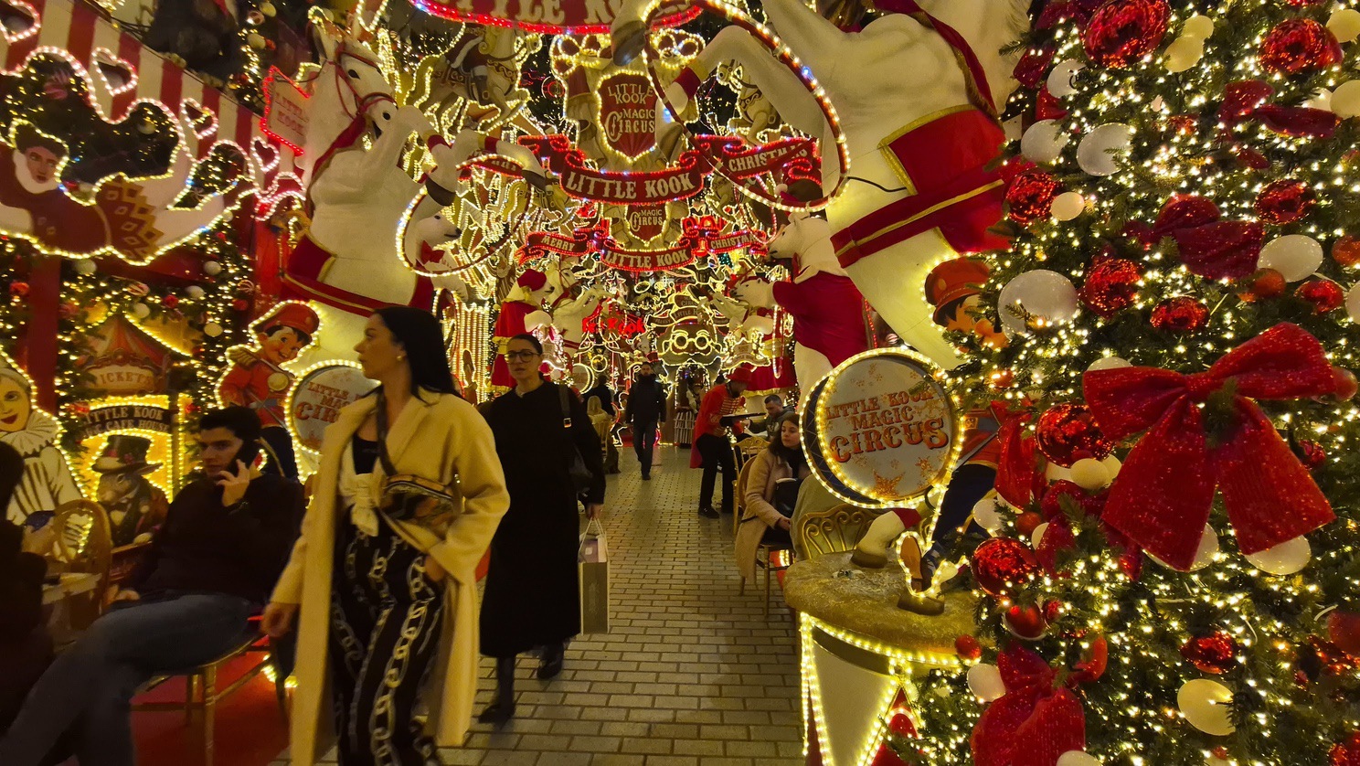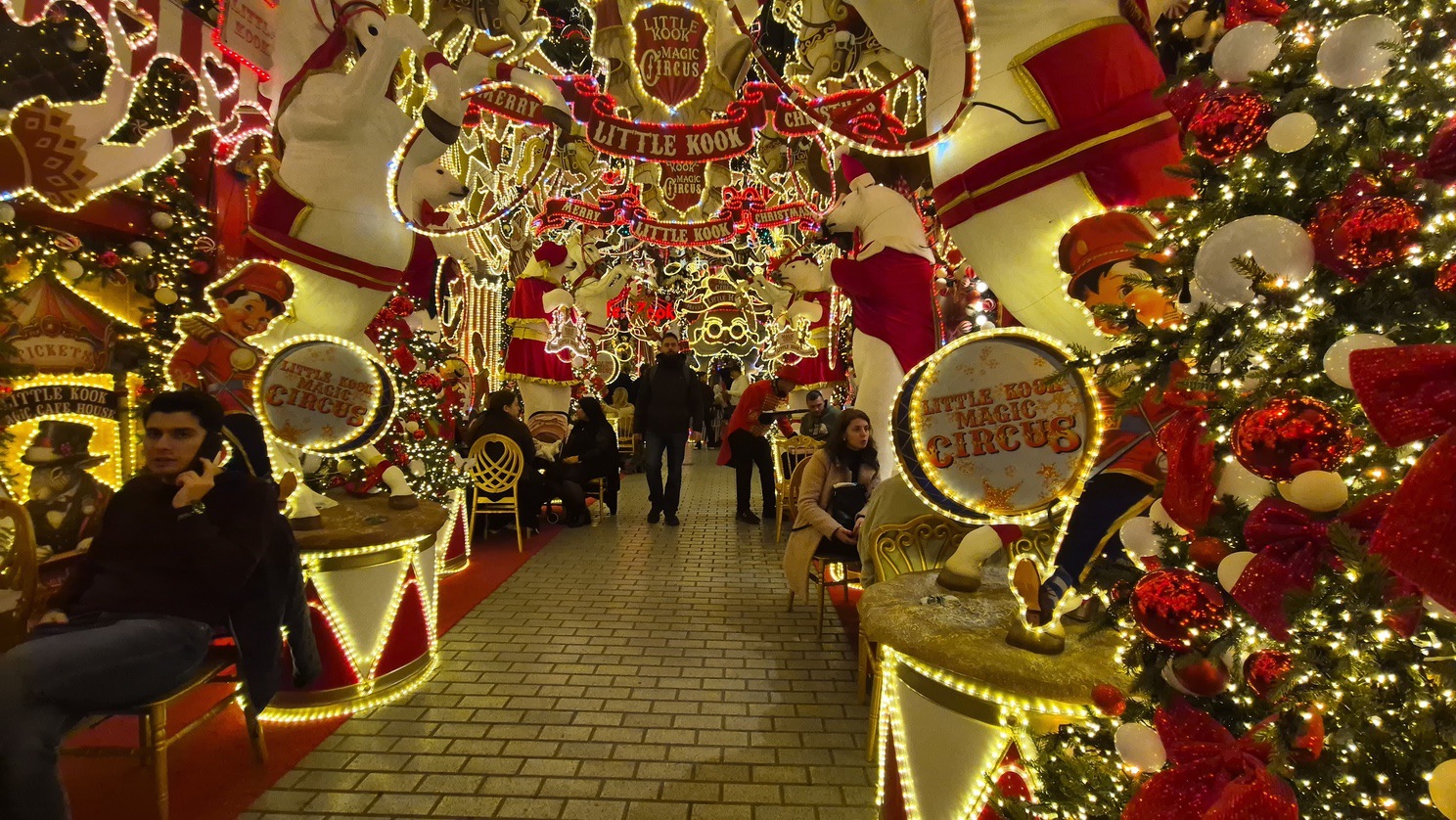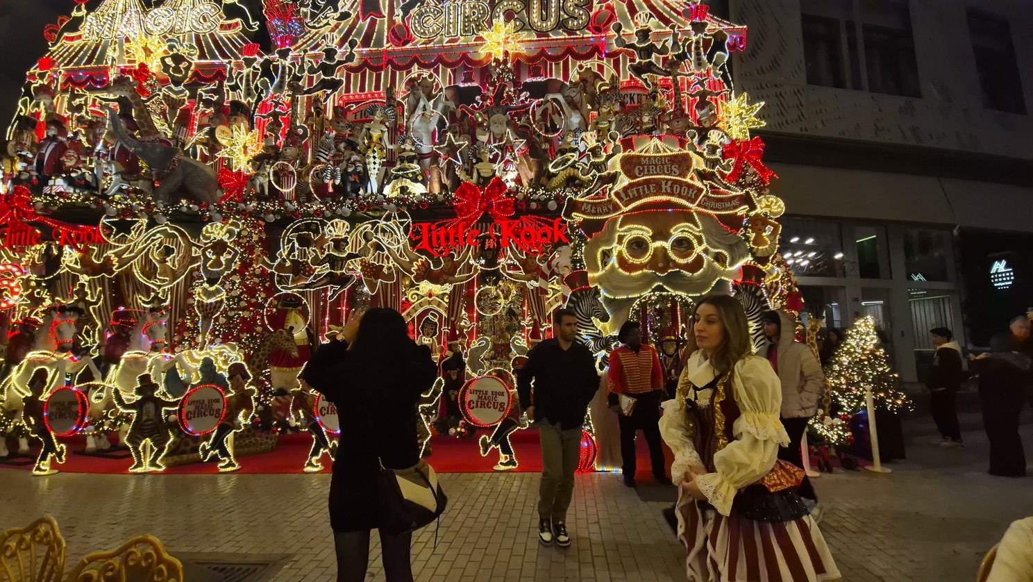 Οι πρώτες νότες της εμπειρίας ξεκινούν πριν καν πλησιάσεις. Από μακριά, το στενό πλημμυρίζει χρώματα, φως, μουσικές και κινούμενες φιγούρες. Άλογα, ζέβρες, τεράστιοι καρυοθραύστες, ζαχαρωτά, μπαλαρίνες και Άγιοι Βασίληδες δημιουργούν μια χριστουγεννιάτικη έκρηξη που εξαπλώνεται από το ένα κτίριο στο άλλο. Κάθε γωνιά, κάθε πινελιά, κάθε μικρή λεπτομέρεια δείχνει πως τίποτα δεν έχει αφεθεί στην τύχη.