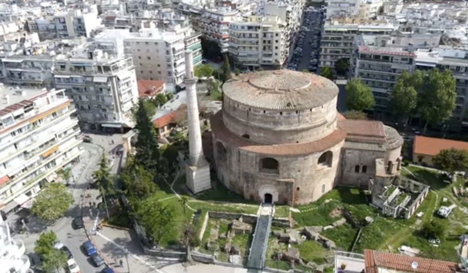 Δύο από τα πιο χαρακτηριστικά ρωμαϊκά μνημεία. Η Ροτόντα, με τα εντυπωσιακά ψηφιδωτά της, υπήρξε ναός, τζαμί και σήμερα μουσείο. Η Αψίδα του Γαλερίου (Καμάρα), λίγα μέτρα μακριά, αποτελεί σύμβολο της ρωμαϊκής παρουσίας στην πόλη.