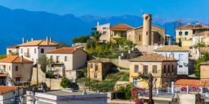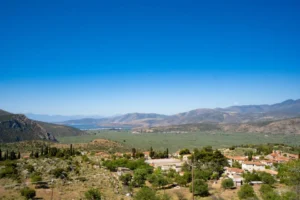Απλωμένο στο βουνό και με θέα τον Κορινθιακό κόλπο