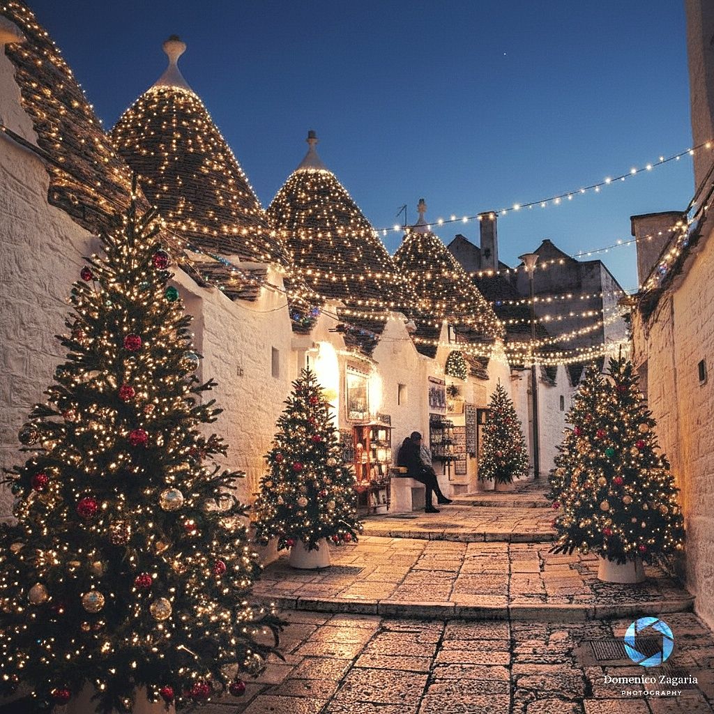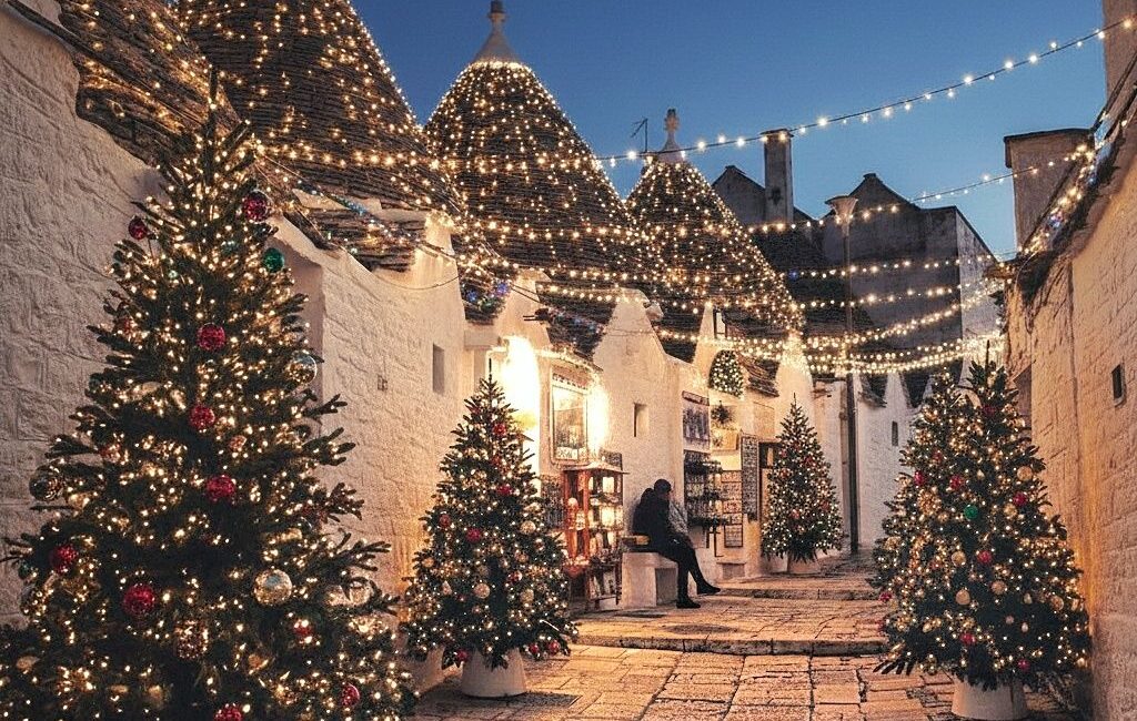 Η μικρή πόλη της Απουλίας, γνωστή για τα χαρακτηριστικά πέτρινα trulli, μεταμορφώνεται κάθε Δεκέμβρη σε ένα σκηνικό που μοιάζει περισσότερο με ταινία παρά με πραγματικότητα.