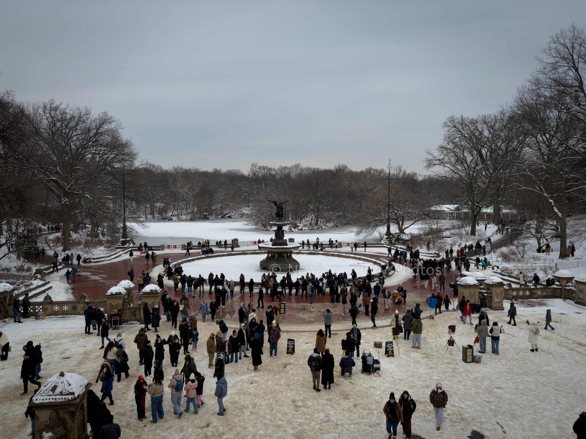 Στη Bow Bridge, οι φωτογραφίες δίνουν και παίρνουν. Ζευγάρια, παρέες, επισκέπτες από κάθε γωνιά του κόσμου στέκονται για λίγο, κοιτούν τη γέφυρα, το χιόνι, το τοπίο και χαμογελούν. Λίγο πιο κάτω, στο Bethesda Terrace, το σιντριβάνι γίνεται σημείο συνάντησης. Άλλοι απλώς περνούν, άλλοι μένουν. Κανείς δεν βιάζεται.