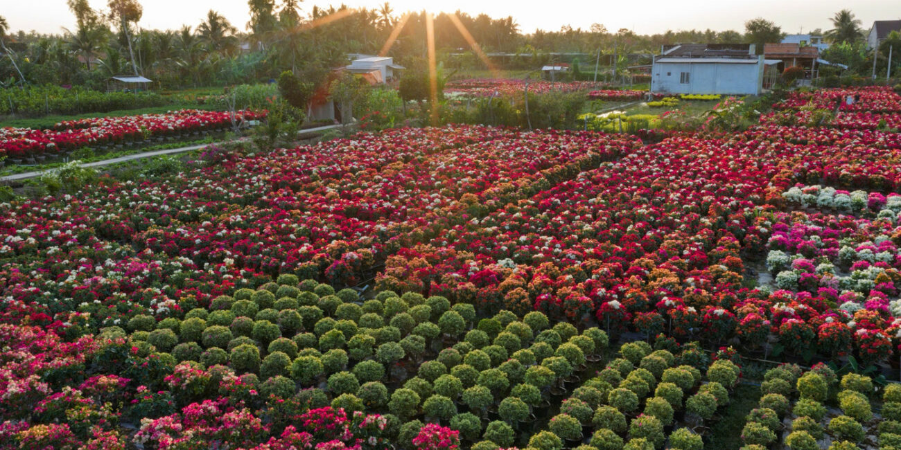 Βλέποντάς την από ψηλά, η γαλήνια εξοχή μοιάζει τυλιγμένη σε ένα πολύχρωμο ταπισερί, επάξια επάξια του τίτλου «βασίλειο της βουκαμβίλιας» του Δέλτα του Μεκόνγκ. Ολόκληρο το τμήμα του δρόμου, μήκους σχεδόν 2 χιλιομέτρων, είναι καλυμμένο με δεκάδες χιλιάδες πολύχρωμες βουκαμβίλιες.