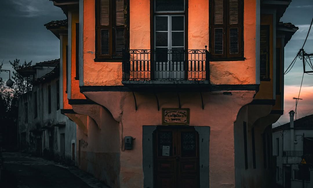 Το σούρουπο, το φως αλλάζει δραματικά το τοπίο. Οι θερμοί τόνοι των τοίχων αντανακλούν το τελευταίο φως της ημέρας, τα παντζούρια κλείνουν αργά, και η ησυχία αποκτά βάθος. Είναι η στιγμή που το Βαρούσι αποκαλύπτει τον χαρακτήρα του.
