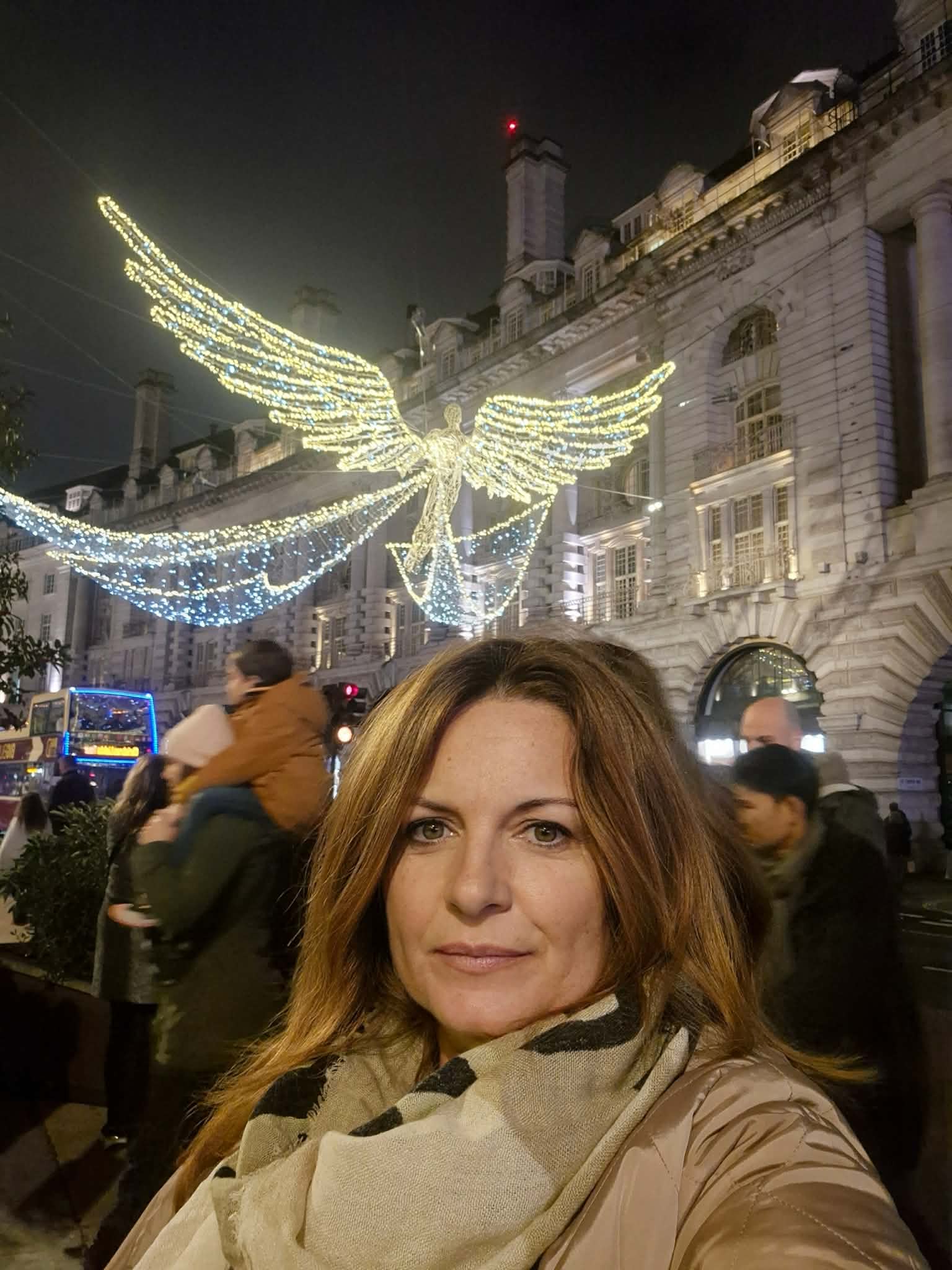 Η βόλτα στο κέντρο ξεκινά σχεδόν πάντα από τη Regent Street, όπου οι διάσημοι φωτεινοί άγγελοι απλώνονται σαν χρυσή γέφυρα πάνω από τον δρόμο. Έχουν γίνει πλέον παγκόσμιο σύμβολο των γιορτών∙ χιλιάδες φωτογραφίες, εκατομμύρια προβολές, αμέτρητα βίντεο κάθε χρόνο. Κι όμως, τίποτα δεν συγκρίνεται με τη στιγμή που τους βλέπεις από κοντά. Οι λάμψεις τους αντανακλούν στα κόκκινα διώροφα λεωφορεία, στα μαύρα ταξί, στις υγρές προσόψεις των κτιρίων — κάθε επιφάνεια μεταμορφώνεται σε καμβά.